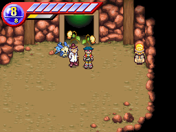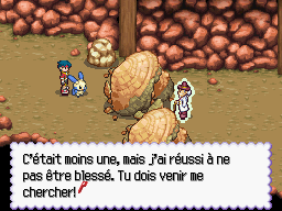 Ce tunnel se traverse facilement. La petite sortie que vous apercevez après un moment est un cul-de-sac, prenez vers le nord. Là, les choses se corsent. Un Triopikeur apparaît brièvement, puis un éboulement vous sépare du Prof. Pressand ! Il vous faut désormais crapahuter à travers cette grotte inconnue infestée de Pokémon délogés par l'éboulement.