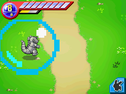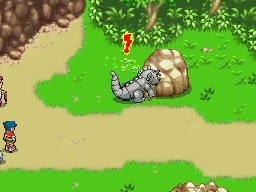 Alors que vous les poursuivez, ils déclenchent un éboulement qui tombe à un cheveu derrière vous. Le premier éboulement avait également été provoqué par ces individus ! La poursuite continue, vous êtes cette fois arrêtés par un Rhinoféros très en colère. Utilisez la Poké Aide Eau (ou Plante) pour terminer cette capture aisément !