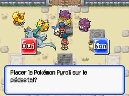 Pyroli se trouve dans la zone souterraine, tout au bout du couloir. Il fait mal, Grolem et Donphan seront utiles contre lui !