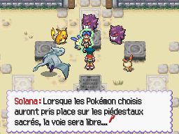 Touchez les piédestaux pour que les Évolitions aillent dessus.