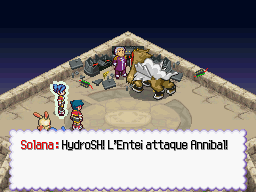 Annibal vous attend au sommet du Temple de Fiore pour expliquer les motivations de son plan, ainsi que ses finalités. Cependant, il ne vous laissera pas vous en tirer facilement, donc préparez bien votre équipe et votre Capstick ! Donphan, votre partenaire chargé à 5/5 et Aquali vous seront très utiles lors de ce combat. Voltali peut être recommandé pour charger votre Capstick. Laisser votre Capstick à environ 700 points d'expérience avant le prochain niveau assure une recharge gratuite entre deux des Fauves Légendaires.
