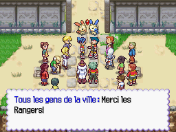 Les Pokémon Légendaires sauvés, le Groupe Go-Rock dissous et le Méga-Capstick détruit : Fiore est sauvée de cette mauvaise emprise ! Annibal s'enfuit après avoir revu le Prof. Pressand, et une foule vous accueille en héros pour tous vos actes. Mission accomplie !