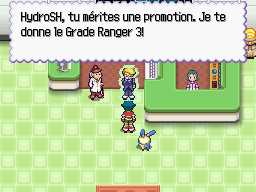 Pour vous féliciter de votre travail, Lucas vous fait passer au Grade 3. Vous pouvez désormais utiliser la Poké Aide Poison et la Poké Aide Psy. Consultez le glossaire pour savoir à quoi elles correspondent et comment les utiliser ! De plus, la Jauge de votre Pokémon Partenaire augmente d'un cran.
