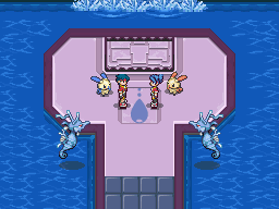 Traversez le pont et passez devant la statue d'Entei. Le défi suivant est inaccessible à cause de "scientifiques", continuez alors vers le nord. Dans la zone soufflent des vents violents. Prenez le chemin le plus à gauche à chaque intersection.Libégon est très rapide, donc observez bien ses mouvements pour le capturer !