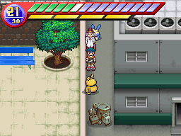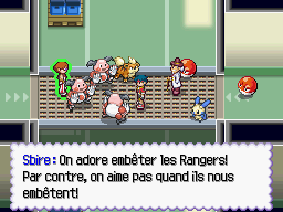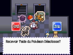 Vous pouvez à présent entrer par la petite porte qui se trouve sur la façade avant droite du complexe. Miaouss coupera la Clôture en Bois et Makuhita déplacera la Caisse à l'étage, vous permettant de sauter dans le trou et de récupérer Caninos, seule Poké Aide Feu du bâtiment. Ne le perdez pas, vous ne pourrez l'utiliser qu'une seule fois car passé le pont extérieur, vous ne pourrez plus revenir en arrière !