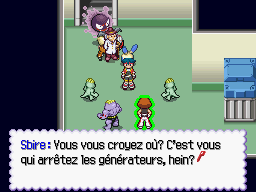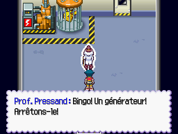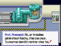 Lorsque vous pénétrez dans le premier bâtiment, vous arrivez dans la salle du premier générateur. Tous les générateurs de l'usine fonctionnent en absorbant l'énergie électrique d'un Pokémon. Il faut casser les barreaux de la cage pour que le Pokémon puisse s'enfuir et que le générateur s'arrête.