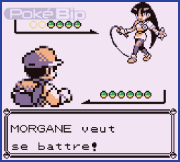 Elle est spécialisée dans le type Psy, qui n'a qu'une faiblesse : le type Insecte. Autant dire qu'il n'en a pas vu la rareté et la faiblesse des attaques insecte. Cette arène est remplie de téléporteurs, et cette fois pas moyen d'y échapper ! Une solution pour ne pas perdre son chemin consiste à toujours prendre le téléporteur qui se trouve soit au-dessus, soit en-dessous de vous lorsque vous arrivez dans une pièce (vous pouvez faire de même avec ceux à votre gauche/droite, mais ne mélangez pas les deux méthodes !), et vous finirez par atteindre Morgane à coup sûr.
