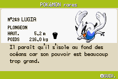 Note 2 : Pour ce qui est des Pokémon introuvables, vous pouvez toujours tenter de les obtenir via les versions Rubis, Saphir, Émeraude, Colosseum ou XD !