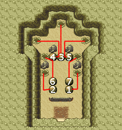 C'est grâce à cette très petite caverne et son énigme que le joueur peut capturer les Zarbi se trouvant dans les Chambres Tanoby. En effet, en plaçant les rochers (grâce à la CS Force) au bon endroit comme indiqué sur cette image , quelque chose se déclenche : il s'agit de l'apparition des Zarbi dans les ruines.