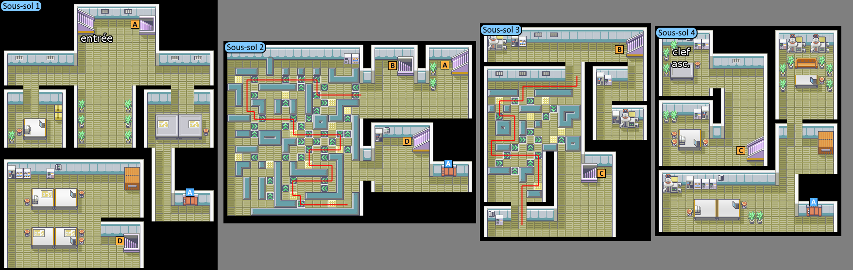 | Clé Asc. | Sous-sol 4, lâchée par un Sbire Team Rocket dans la salle nord-ouest une fois vaincu | |