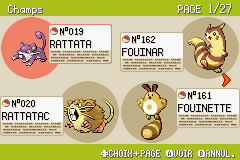 ![]() | Champs | Permet de voir les Pokémon que vous avez rencontré dans les herbes sur les routes. |