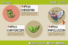 ![]() | Forêts | Permet de voir les Pokémon que vous avez rencontré dans les forêts. |