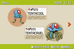 ![]() | Mers | Permet de voir les Pokémon que vous avez rencontré dans la mer. |