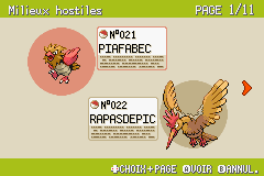 ![]() | Milieux Hostiles | Permet de voir les Pokémon que vous avez rencontré dans des milieux hostiles, comme le Parc Safari. |