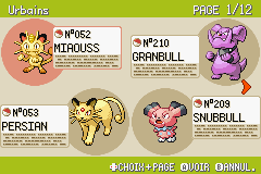 ![]() | Urbains | Permet de voir les Pokémon que vous avez obtenu par échange, que l'on vous a offert ou présents dans les villes. |