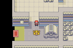 Sur la carte de la Centrale l'entrée se trouve en bas, la sortie en haut. Traversez la Centrale, arrivé près de la fin, prenez garde car Électhor, un Pokémon légendaire et unique dans le jeu sera présent. Si vous commencez un combat contre lui, vous n'aurez pas d'autre choix que de le capturer sinon il disparaîtra à tout jamais. Soyez donc sûrs de pouvoir le capturer avant de commencer le combat.
