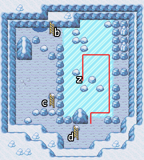 Cette grotte contient des Pokémon glace de niveaux 30 à 50. Ils sont assez forts mais ils n'apparaissent pas très fréquemment.