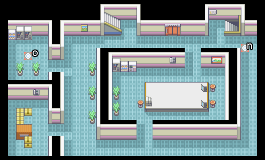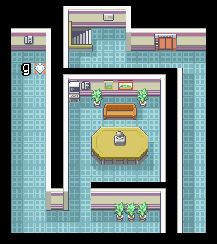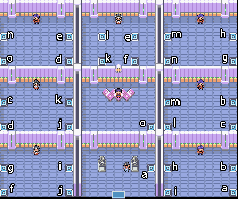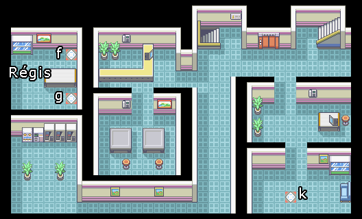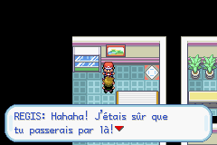Allez au 2ème étage, allez jusqu'au téléporteur F vous arriverez au 6ème étage, Régis vous affrontera. Ses Pokémon seront assez puissants. Il possède toujours une équipe diffèrente selon le starter que vous avez pris.