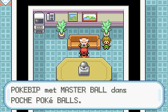 Une fois ce mafieux battu, il s'enfuira puis allez parler au président de la société qui vous offrira une Masterball, une Pokéball qui n'échoue JAMAIS. Elle est unique donc gardez-la précieusement !