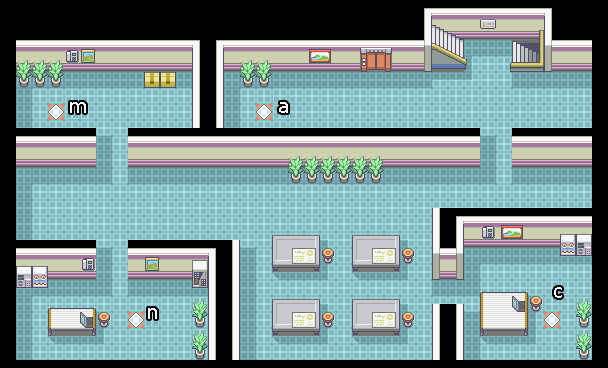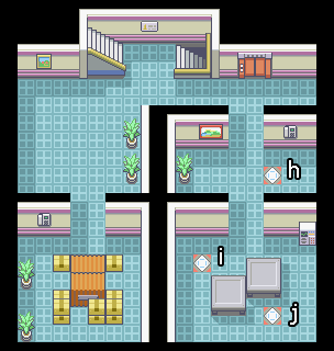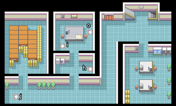 Vous êtes à Lavanville, le bâtiment le plus imposant est la Tour Pokémon, là où les gens viennent pour se souvenir de leurs Pokémon défunts. Rentrez dans ce bâtiment. Je ne mets pas le plan de cette tour car c'est simplement une suite d'étages, il n'y a pas besoin de carte ;)
