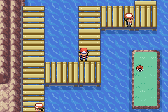 C'est un ensemble de petits ponts au dessus de la mer. Continuez votre chemin vers le bas, vous aurez à affronter des pêcheurs qui ont surtout des Pokémon du type eau dont les niveaux vont jusqu'à 25. Même si vous n'avez pas le bon type face à eux, vous n'aurez aucune difficulté à les battre.