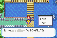 Au bout d'un moment, vous tomberez sur un Ronflex bloquant la route. Utilisez votre Pokéflûte obtenue précédemment pour le réveiller. Il vous attaquera, vous pouvez le capturer, c'est un Pokémon très fort. Son niveau 30, son grand nombre de PV, son attaque repos associée à une baie Maron le rendent assez coriace à capturer.