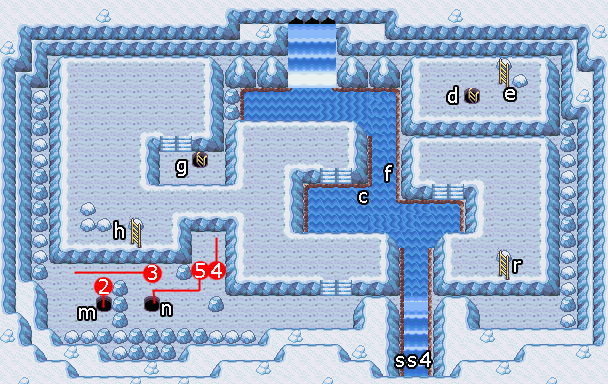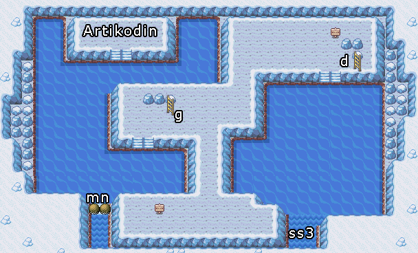 Une fois que les trous M et N auront chacun leur rocher, tombez dans ce trou. En allant en haut du Sous-sol 4 vous trouverez Artikodin. Si vous pouvez le capturer, capturez-le, sinon retournez à l'échelle G.