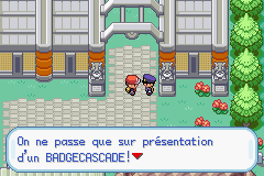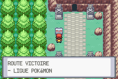 Quand vous l'aurez battu, il ira vers la Ligue, soignez vos Pokémon à Jadielle et retournez sur la route 22 en continuant maintenant à gauche jusqu'à l'entrée de la Ligue Pokémon. Notez que vous aurez besoin de Surf et de Force.
