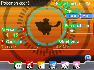 | Nom | Effet | Pokémon concernés | Proba. | Navi-Dex |