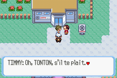 Au début de votre aventure, vous aiderez un jeune garçon dénommé Timmy à attraper son premier Pokémon. S'il parait, de prime abord, timide et peu sûr de lui, il s'endurcit au cours de l'aventure. Vous constaterez ses progrès à travers plusieurs combats. En voici les détails :