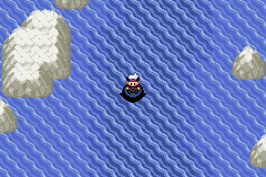 Prenons cette fois, le Chenal 127 (qui est assez vaste). Comme toutes les autres routes maritimes, il y a des Pokémon aquatiques et des dresseurs :