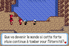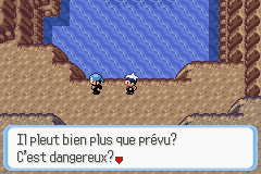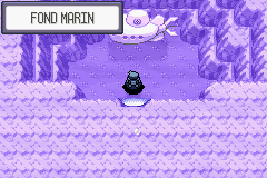Nous arrivons dans la Caverne Fondmer. Des membres de la Team Aqua (S)/Magma (R) occupent les lieux. Les CS Force et Éclate-Roc sont nécessaires pour progresser dans la grotte.Version Rubis