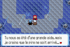 Dans la dernière salle (brumeuse), nous tombons nez-à-nez avec Kyogre, le Pokémon légendaire marin. En nous plaçant en face de lui, Arthur, le leader de la Team Aqua débarque et nous provoque en duel.