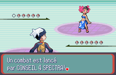 Spectra est la deuxième membre du Conseil des 4 et utilise des pokémon de type Spectre. Des Pokémon de type Spectre et Ténèbres seront très efficaces ici, excepté contre son Ténéfix qui ne possède aucune faiblesse en raison de son double type.