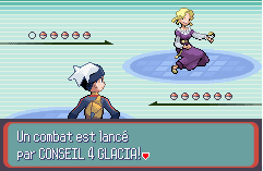 Le troisième membre du Conseil des 4 est Glacia. Elle maîtrise le type Glace qui sont faibles face au type Roche, Combat, Feu et Acier. Un Pokémon de type Électrick viendra également à bout d'une bonne partie de son équipe.