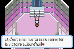 Nous sommes maintenant le nouveau Maître Pokémon de la région. Pierre nous félicite pour notre exploit. Notre rival(e) qui voulait nous donner des conseils pour réussir à vaincre ce dernier arrive finalement trop tard. Il (elle) est suivi(e) par le Prof.Seko qui nous félicite à son tour et regarde l'avancée de notre Pokédex.