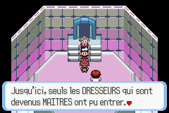 Deux dresseurs doivent vérifier avant si l'on possède bien tous les badges de la région. Une fois fait, ils nous ouvrent la voie. Avançons et laissons notre destin s'accomplir.