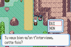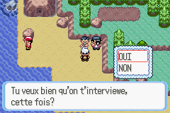 Ces journalistes peuvent être combattus à 3 endroits différents et autant de fois que l'on veut ; à la fin du combat (peu importe si vous les battez ou non), vous pouvez accepter ou non de faire une interview. Ils permettent de répandre votre célébrité dans la région d'Hoenn. Vous pouvez notamment grâce à ces interviews attirer l'attention des dresseurs listés dans votre Pokénav.Combat n°1 : Route 111 (au nord de Lavandia)