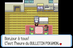 Une émission aléatoire qui apparaît seulement une fois que vous avez échangé à votre ami un Pokémon (le sien doit avoir été pêcher).Bulletin Pokémon