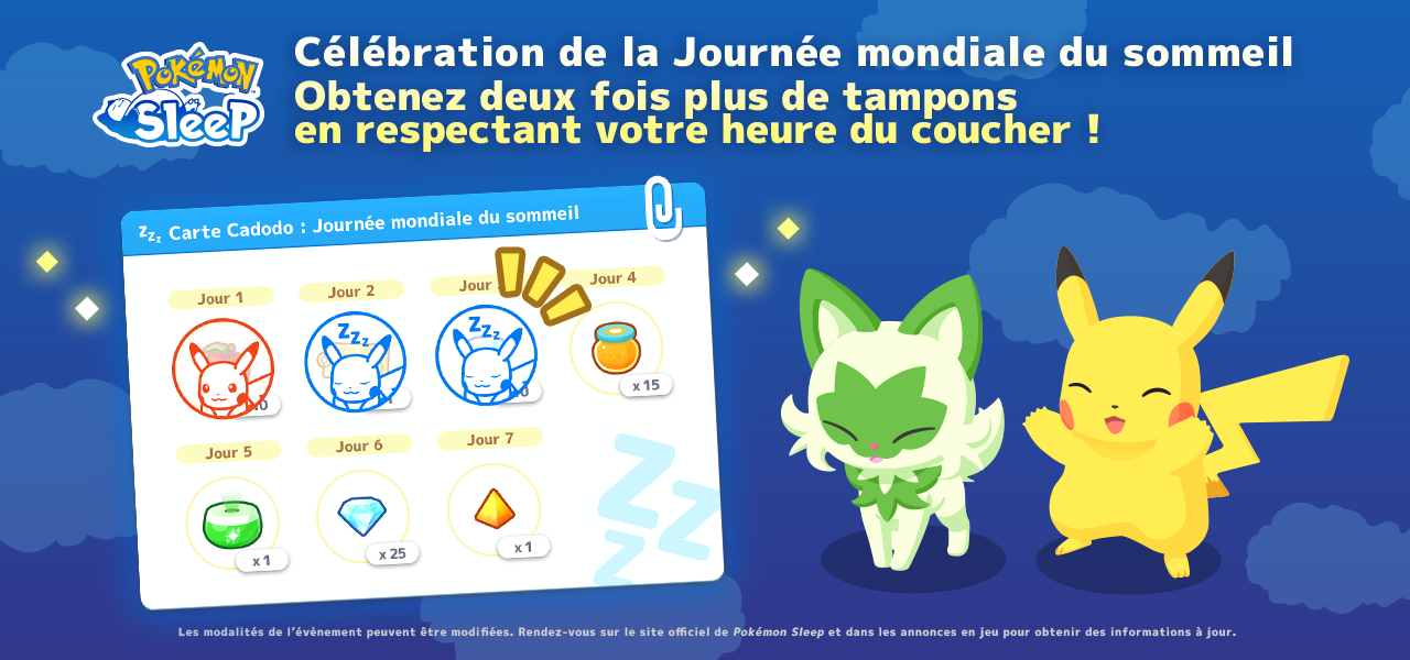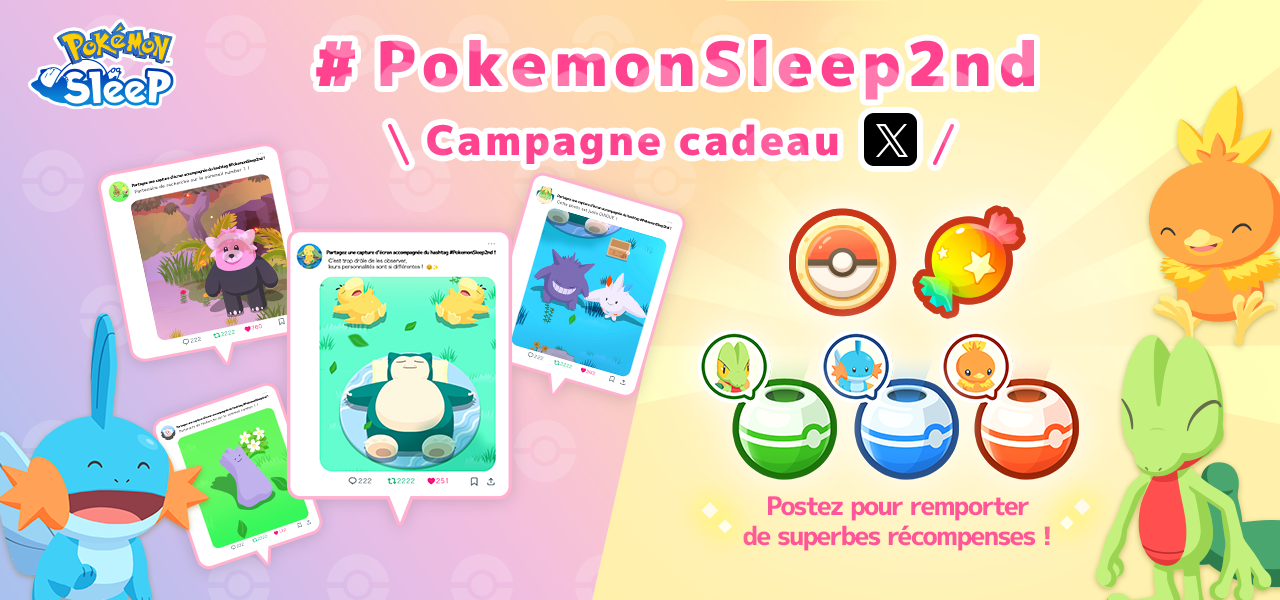 ![]() | PokemonSleep2nd Campagne cadeau X | Du 14/07/2025 (03h00 UTC) au 21/07/2025 (15h00 UTC) | Toutes les zones |