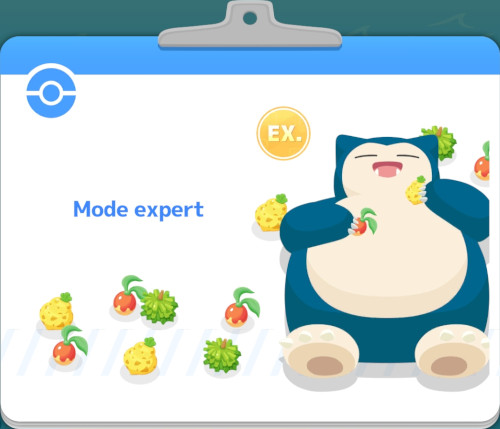 • En mode expert, les bonus s’appliquant aux Pokémon qui récoltent les Baies préférées de Ronflex se cumulent aux bonus des évènements en cours.Prenons par exemple le bonus du mode expert faisant monter d’un niveau la compétence principale des Pokémon qui récoltent les Baies préférées de Ronflex. Celui-ci peut se combiner à un bonus d’évènement octroyant également un niveau de plus à cette même compétence, lui faisant ainsi gagner deux niveaux au total.