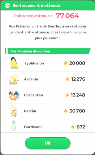 Lorsque le nombre de Baies et d'Ingrédients que votre Pokémon a stockés a atteint la capacité max. de son inventaire, le Pokémon continue à produire du soutien. Il ne récolte plus que des Baies, converties directement en points de puissance pour Ronflex, ce que le jeu affiche sous forme de "Renforcement inattendu".