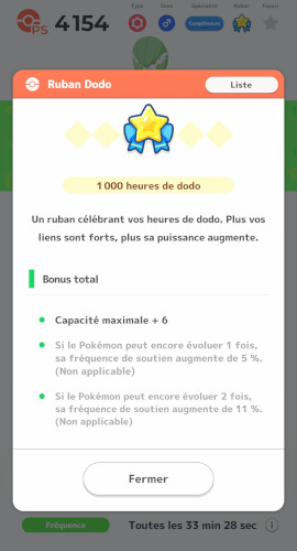 Remarque 1 : Après 1000 heures de temps dormi à proximité, vous obtenez également une icône de profil spéciale de ce Pokémon de soutien.