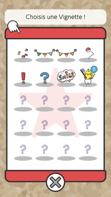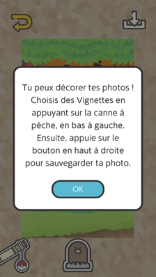 Il vous sera ensuite proposé de choisir l'une des 4 photos que votre appareil photo a prises automatiquement pendant votre brossage (si vous l'avez autorisé dans les paramètres). Vous pouvez ensuite la personnaliser avec des vignettes en touchant la canne à pêche, et même choisir un encadrement en touchant le Taupiqueur. L'icône Smogo vous permet de retirer toutes les vignettes.