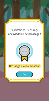 Une fois que vous commencerez à bien vous brosser les dents, des médailles viendront s'ajouter à votre collection ! Visibles sur l'accueil (comme le montre l'image), il y en a 8 en tout à obtenir. Voici leur design :