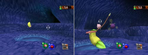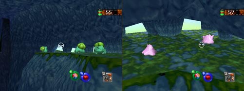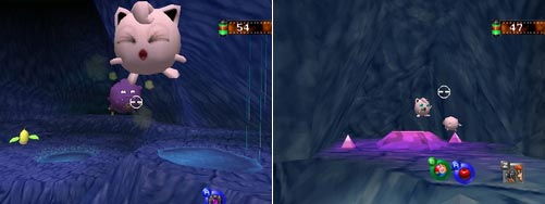 En entrant dans le quatrième passage, vous verrez en - dessous de vous un Nosferapti ayant kidnappé un Pikachu ; jetez - lui une Agass'Ball avant qu'il ne s'élève au - dessus de vous, il relâchera Pikachu qui atténuera sa chute ... avec des ballons ! Plus loin, autour d'un oeuf en cristal (inutile pour le moment), vous trouverez deux Lippoutou en méditation. Et plus loin, juste à la fin, vous entendrez et verrez à votre droite les Rondoudou en concert. Selon le nombre de Rondoudou (3) que vous avez sauvés des Smogo, les points de la photo augmenteront. C'est pas mignon ?