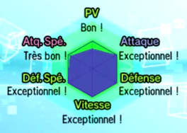 En plus des infos individuelles, une seconde remarque située en bas du tableau indique le potentiel général du Pokémon concerné, en fonction du total de ses IV.