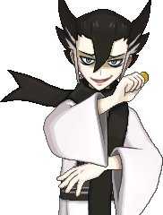 Pieris est le membre du Conseil 4 d'Unys, spécialiste du type Ténèbres. Alors qu'il n'a pas de rôle majeur dans les anciens jeux, il aidera le joueur à progresser dans Pokémon Soleil et Lune. | |
