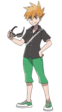Blue est à la fois le premier rival et le premier Maître Pokémon de la série. Il commence son aventure aux cotés de Red en étant particulièrement désagréable avec ce dernier. Après de multiples rencontres avec son rival durant l'aventure, Blue finit par devenir Maitre Pokémon mais perd très rapidement son statut au profit de Red. Blue réapparaît dans Or, Argent, Cristal, Heartgold et Soulsiver en tant que Champion d'arène de Jadielle. | |