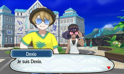 Dexio et Sina sont les assistants du Professeur Platane à Kalos. Lors de l'aventure de Pokémon XY, ils étudient le type Fée, récemment découvert, et travaillent sur le Pokédex. En dehors de leur travail d'assistant, Dexio et Sina sont également les protecteurs de Kalos, enfilant un masque pour combattre le crime dans la région. Ils participèrent au combat final contre la team Flare en libérant les Pokémon que ces derniers avaient capturés. Dans Pokémon Soleil et Lune, Dexio et Sina vous confieront la Boîte Zygarde et vous demanderont de retrouver les cœurs et cellules de Zygarde disséminés dans la région. | |
